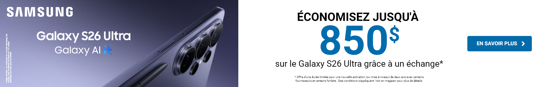 À partir de 0,00 $/mois* avec une entente sélectionnée de 2 ans avec certains fournisseurs