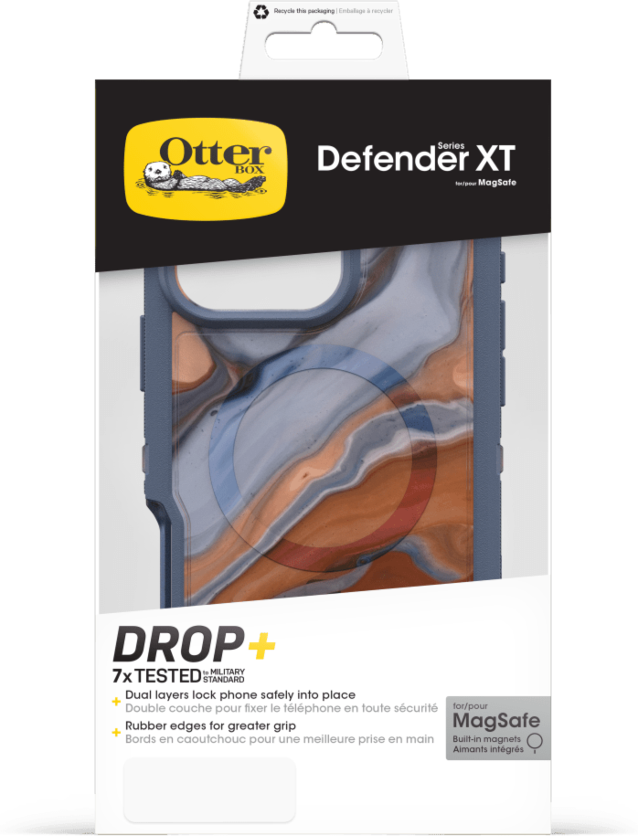 The OtterBox Defender Series Pro XT is built to 7X military standard drop defenses and features a thinner, dual-layer design with a pressure-fitted frame that keeps devices securely in place — and a secure grip. Built-in magnets snap to MagSafe chargers and accessories, and integrated anchors give extra ways to carry the case.