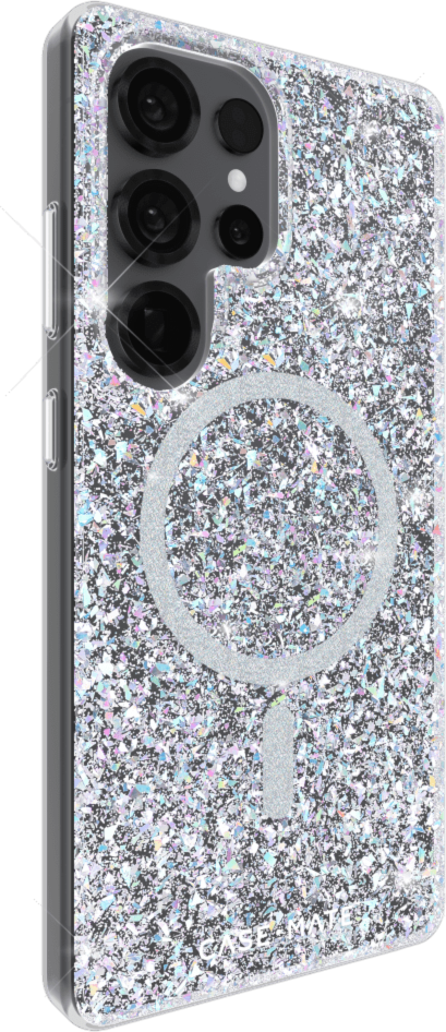 The Case-Mate Twinkle Disco magnetic case is the life of the party! Get groovy with the reflective iridescent sparkle that catches the light like a disco ball. Strong built-in magnets enable seamless use of magnetic accessories and wireless charging, while 12-foot drop protection ensures your device's safety.